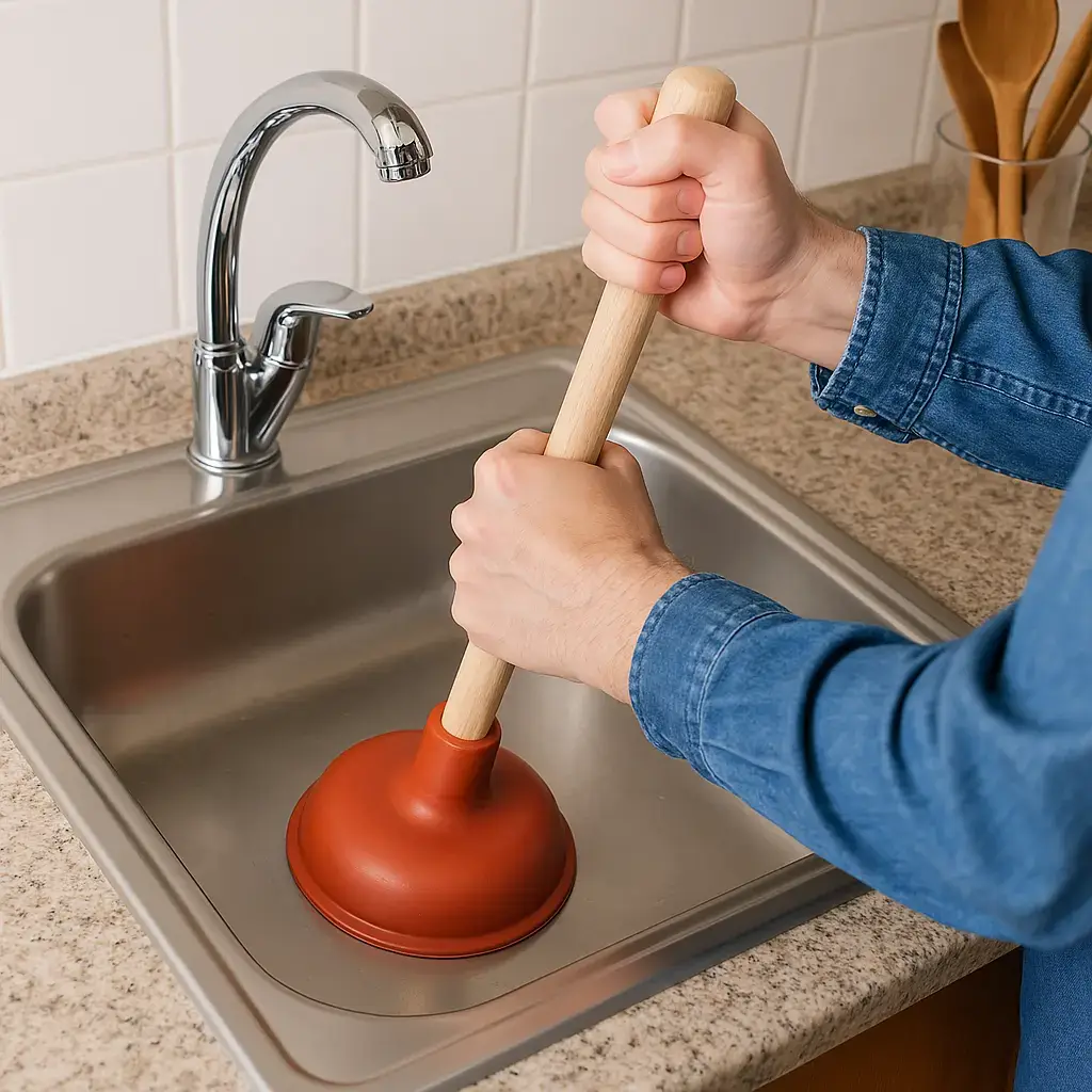 پس از قرار دادن تلمبه، دسته را محکم فشار دهید تا هوای داخل کاسه یا فلنج خارج شود. سپس بهسرعت دسته را بالا بکشید تا مکش ایجاد شود. این حرکت رفتوبرگشتی (فشار و مکش) به رفع گرفتگی کمک میکند.